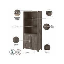 Kathy IrelandĀ® Home By Bush Furniture Connecticut 5 Shelf Bookcase, Black Suede Oak (KI40103-03)