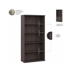 Bush Business Furniture Office 500 5-Shelf 70″H Bookcase With Doors, Storm Gray (OFB136SG)