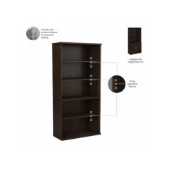 Bush Business Furniture Studio C Tall 5 Shelf Bookcase With Doors, Black Walnut (STC015BW)