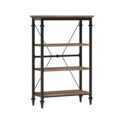 Thomasville Breslyn 3-Shelf 48″H Metal Bookcase, Crosscut Hickory/Black Nickel (SPLS-BRBK-TV)