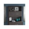 - The hutch for credenza offers large closed storage space, efficient wire management and classic moldings