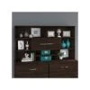 - The hutch for credenza offers large storage spaces and a sliding door.