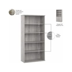 The Bush Business Furniture Hybrid 36″W bookcase hutch offers a stylish, long-lasting storage solution for the modern professional. Attach the hutch to the coordinating Hybrid two-drawer lateral file cabinet or small two-shelf bookcase (both sold separately) for a practical space to organize materials. Shelves support up to 50 lbs. each to accommodate a small collection of books or larger plants and decorations. Find the perfect look for your space with five contemporary finish options: black walnut, modern hickory, platinum gray, storm gray, and white. This bookshelf hutch has been meticulously tested to meet or exceed ANSI/BIFMA quality standards for safety, durability, and performance and is backed by the Bush Business Furniture 10-year manufacturer warranty. See the full Hybrid collection for coordinating items available. American-made with US and imported parts.