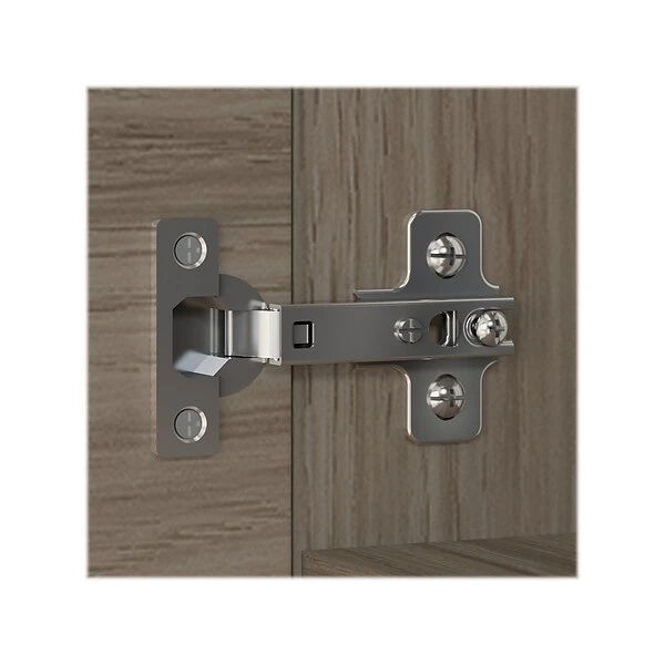 - Cabinet doors open on smooth Euro-style hinges for easy access to office supplies, reference materials, and more
