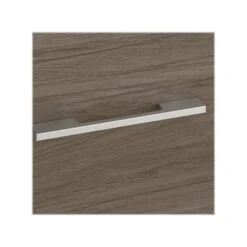 - Available in your choice of stylish black walnut, sand oak, modern hickory, and storm gray finishes with light silver hardware