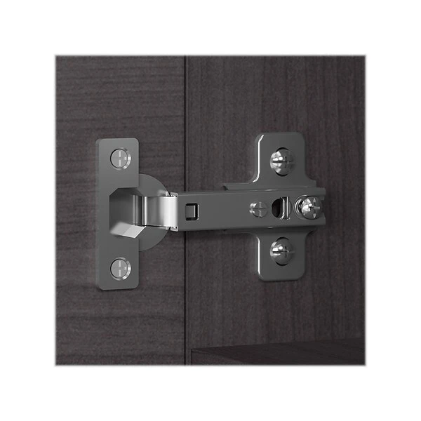 - Cabinet doors open on smooth Euro-style hinges for easy access to office supplies, reference materials, and more