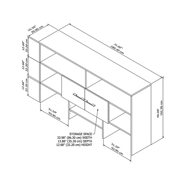 - Assembled dimensions: 40.28″H x 71.02″W x 15.35″D