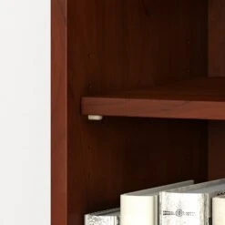 Combine contemporary looks, lasting durability, and a mix of open and concealed storage with the Bush Business Furniture Studio C 5-shelf bookcase with doors. The bookcase looks great, works hard, and adjusts to fit the needs of your office. Designed with two fixed and three adjustable shelves, the bookcase holds your books and reference materials with plenty of room for your favorite decorative accents. Confidently store a variety of items on the spacious and durable shelves designed to hold up to 50 lbs. each. A thermally fused laminate finish fends off everyday damage like scratches and stains throughout the years of everyday use. Two doors with smooth Euro-style hinges conceal your office supplies and add an eye-catching touch to your workspace. This tall bookcase with doors comes with a 10-year warranty and meets ANSI/BIFMA quality test standards. See the full collection for coordinating items available to make your office your own with Bush Business Furniture Studio C. American-made with the US and imported parts.