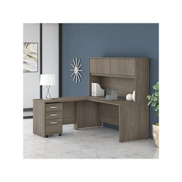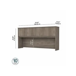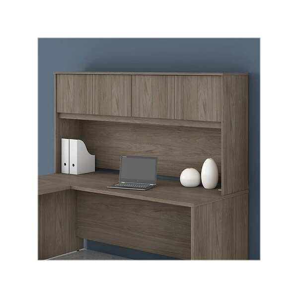 Organize your office with the durable, attractive and functional Bush Business Furniture Studio C desk hutch. With four doors featuring self-closing Euro-style hinges, the hutch conveniently stores office supplies, books, and more to keep your Studio C desk organized. The hutch mounts to the 72″W office desk or credenza desk (sold separately) and provides a fully finished back panel. Add a coordinating tackboard (sold separately) to keep your important notes within sight while you work. The thermally fused laminate construction resists scratches and stains throughout your 40-plus hour week. The classic design is available in your choice of several contemporary or traditional finish options to fit any workspace. The four-door hutch comes with a 10-year manufacturer limited warranty and meets ANSI/BIFMA standards. See the full collection for coordinating items available. American made with U.S. and imported parts.