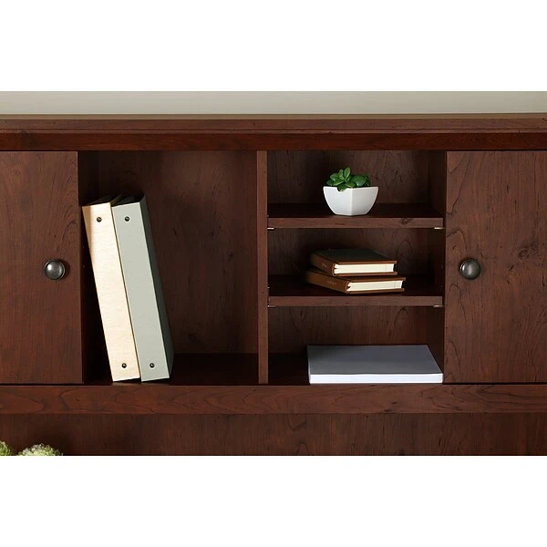 Create a beautiful home office and solve your office storage needs with the Yorktown 60W Hutch by Bush Furniture. This Hutch conveniently attaches to the Yorktown Corner and L-Desks to create a finished and functional office space. Features two closed s storage compartments and open storage cubbies that have adjustable shelves so you can put memorabilia and binders where you want them. See the full line for coordinating items available, all backed by the Bush Furniture 1-Year manufacturer’s warranty.
