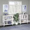 The Bush Furniture Key West small two-shelf bookcase offers a practical storage and display solution that gives your home a touch of casual style. This small bookshelf features a compact, versatile design that makes it a perfect choice for use in a home office, living room, entryway, or virtually any other residential space. One fixed shelf and one adjustable shelf accommodate books, reference materials, and decorations of various sizes. Each shelf supports up to 35 lbs., so you can store and display larger items with confidence. A post leg design and X-pattern accents convey a casual appearance that works well with cottage, coastal, and modern farmhouse style. This small bookcase has been tested to meet ANSI/SOHO quality standards for safety and performance and is backed by the Bush Furniture 1-year manufacturer warranty. See the full collection for coordinating items available.