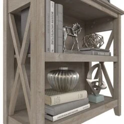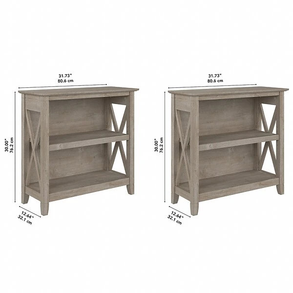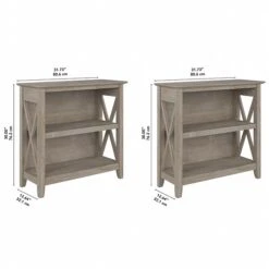 The Bush Furniture Key West small two-shelf bookcase offers a practical storage and display solution that gives your home a touch of casual style. This small bookshelf features a compact, versatile design that makes it a perfect choice for use in a home office, living room, entryway, or virtually any other residential space. One fixed shelf and one adjustable shelf accommodate books, reference materials, and decorations of various sizes. Each shelf supports up to 35 lbs., so you can store and display larger items with confidence. A post leg design and X-pattern accents convey a casual appearance that works well with cottage, coastal, and modern farmhouse style. This small bookcase has been tested to meet ANSI/SOHO quality standards for safety and performance and is backed by a 1-year warranty. See the full collection for coordinating items available.