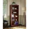 - Five-shelf bookcase features three fixed shelves for stability and two adjustable shelves for flexible storage