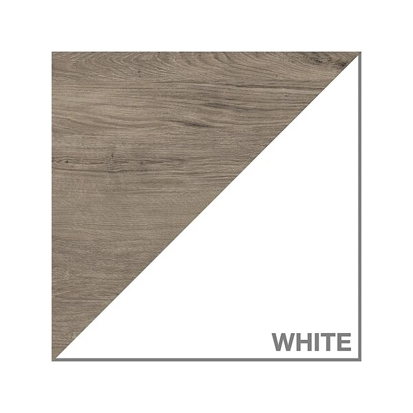 - Standard bookcase is made of laminate over engineered wood in a pure white/shiplap gray finish
