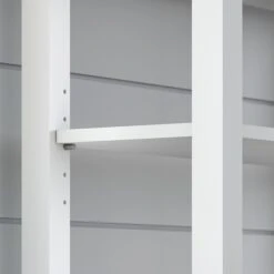 - One adjustable shelf provides flexible storage while the other is fixed for stability