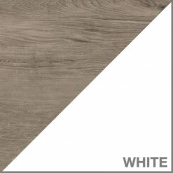 - Made of laminate over composite wood in a stylish pure white and shiplap gray two-tone finish with dark bronze hardware