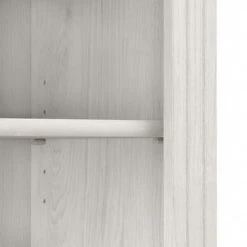 - Tall bookcase made of laminate over engineered wood in linen white oak finish