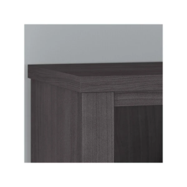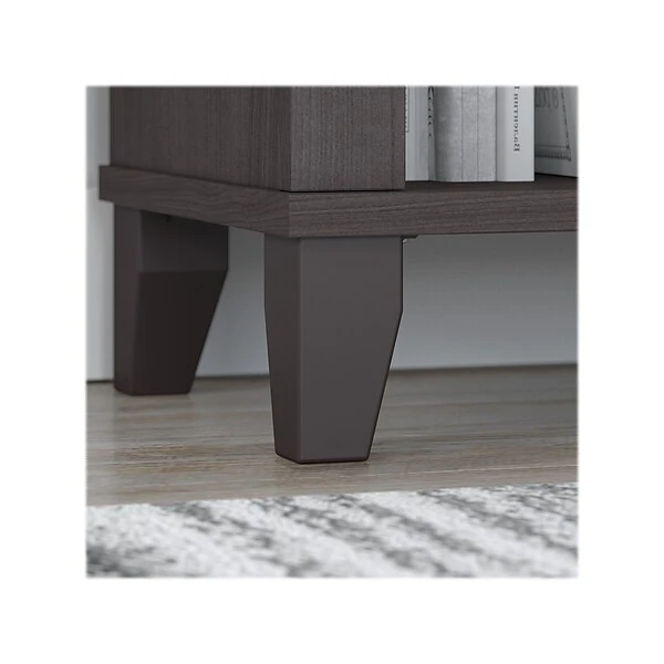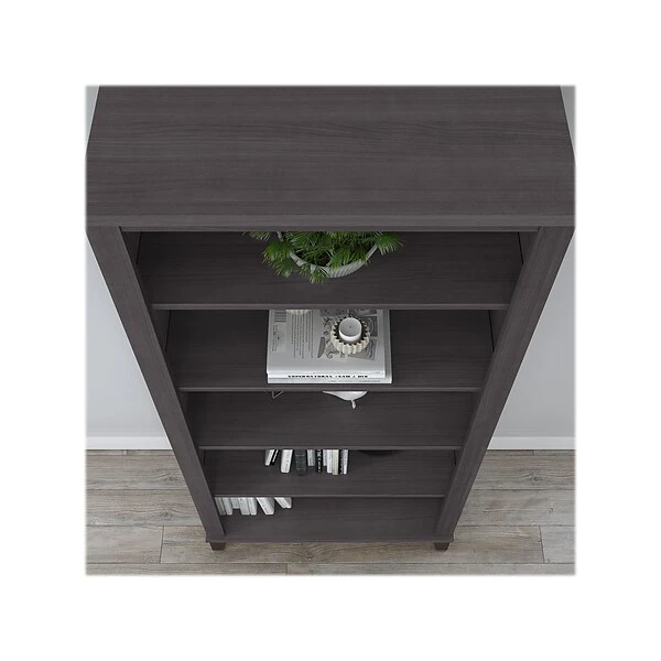 Turn any space into your own personal library with the Bush Furniture Somerset five-shelf bookcase. With a tapered leg design and storm gray finish, this bookcase is a perfect choice to complete any home office or living space. Two shelves are fixed to provide structural strength, and three are adjustable so your items are sure to fit. The height of the bookcase matches that of a Somerset desk and hutch combination (sold separately) to create a coordinated appearance. Its sturdy construction and durable laminate finish allow you to display books, decorations, and more for years to come. This tall bookcase is tested to meet ANSI/SOHO standards for safety and performance and is backed by the Bush Furniture 6-year manufacturer warranty.
