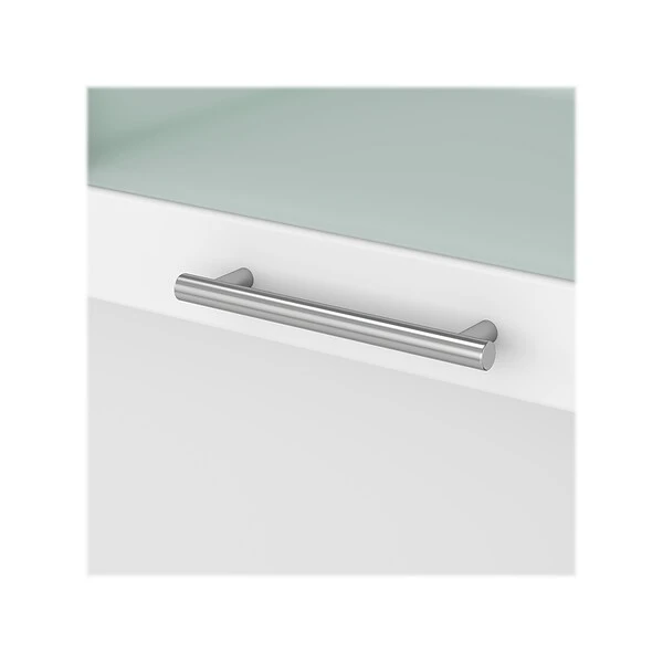 - Transitional styling includes an elegant finish with contemporary metal hardware