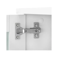 - Closed storage areas with frosted glass doors