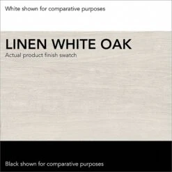 - Five-shelf bookcase set made of laminate over engineered wood in linen white oak finish