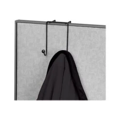 Tidy up work spaces and keep personal effects in one place with these easy-to-install double coat hooks. Made for mounting on cubicle walls from 1.5 to 3 inches thick, this black wire rack boasts a practical double-hook design that offers ample hanging space. Small, lightweight and unobtrusive, these Fellowes Partition Additions cubicle coat hooks provide storage and do not require mounting tools to use.