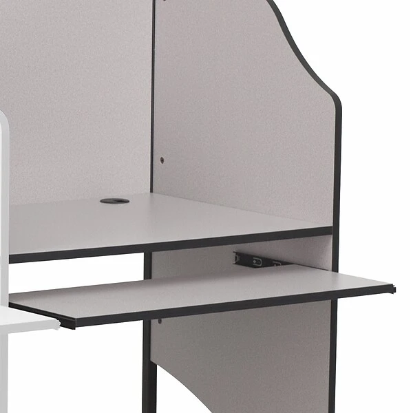The Flash Furniture add-on carrel is a convenient way to add to the existing desk. It can be used in a variety of environments like school, work place and other commercial places. The flash furniture study carrel cannot stand alone and requires a pre-purchased starter kit. This study add-on carrel offers a large work surface and easily accommodates a computer monitor or laptop with some room for books and paperwork. Included with the leveling glides, it offers a stable work surface. Additionally, this nebula Gray add-on carrel provides an environment for relaxing and reading solitude as well.