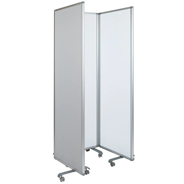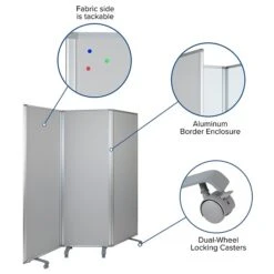 Block off areas in your office or classroom with a 3 section mobile partition. This mobile marker board allows you to become more interactive in the classroom or create privacy between cubicles and open spaces. The cloth partition is tackable to post notes using push pins. Plan out your day or prepare for upcoming meetings by being able to write out your thoughts and post notes. You’ll have a creative space when people stop by your desk or office to formulate ideas.