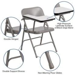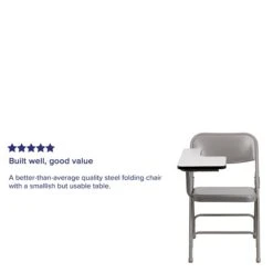 Many night schools, training facilities, book clubs and other groups use tablet arm chairs as an affordable and compact solution when seeking out chairs and desks. A tablet arm chair can also be a great addition in the home as a dedicated space for stud ying. This folding chair with the added tablet arm extension provides you the benefits of a standard folding chair like its portable lightweight design that is easy to store if needed.