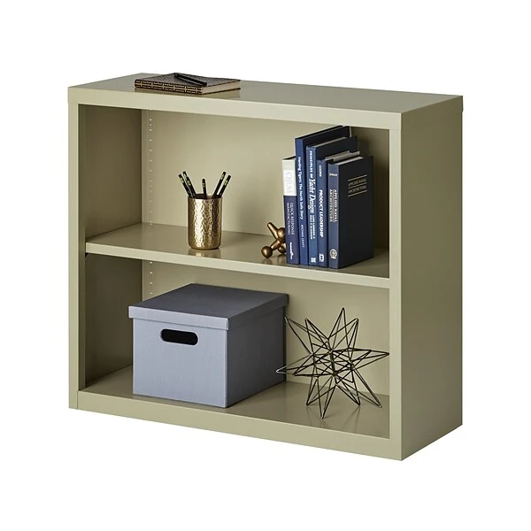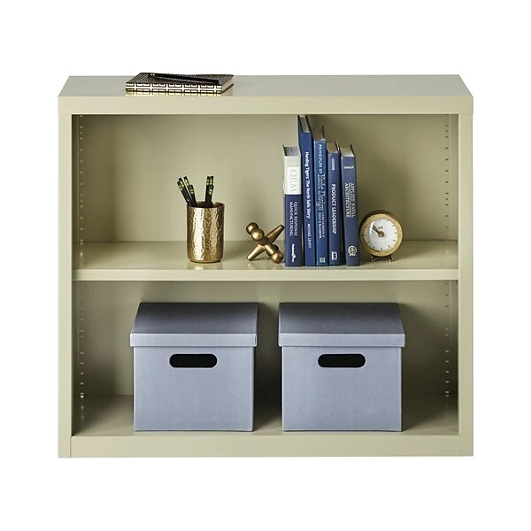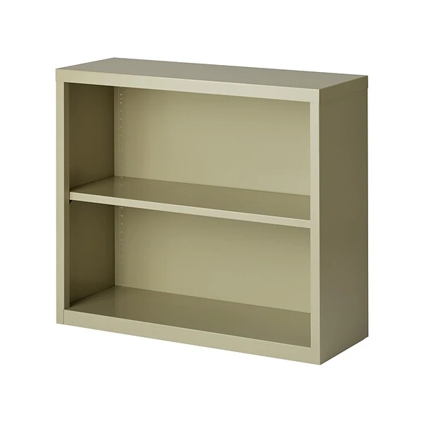 - Two-shelf steel bookcase in baked putty enamel finish perfect for schools, libraries, and offices