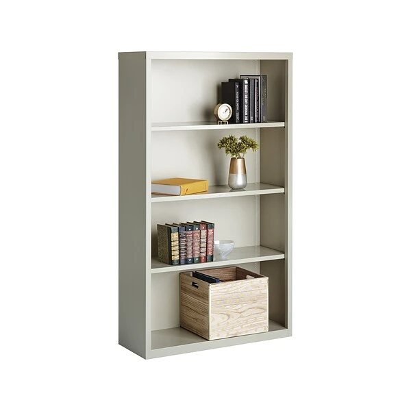 Make a statement in your office with the Hirsh HL8000 Series four-shelf metal bookcase. This durable, fully welded construction bookcase is perfect for all of your home or office storage needs. This bookcase has a 200 lbs. shelf capacity to provide smart and stylish organization. The shelves are adjustable in 1″ increments. The shelf count includes a fixed bottom shelf. The baked enamel finish gives it a polished look perfect for schools, libraries, and offices. Keep desk clutter at bay by storing away documents and books. Create the perfect shelf space to store your belongings by adjusting the placement of the steel shelves. The painted steel surface is nonporous and easy to clean. Limited lifetime warranty. This unit meets or exceeds the ANSI-BIFMA industry standards and is GREENGUARD Gold certified.
