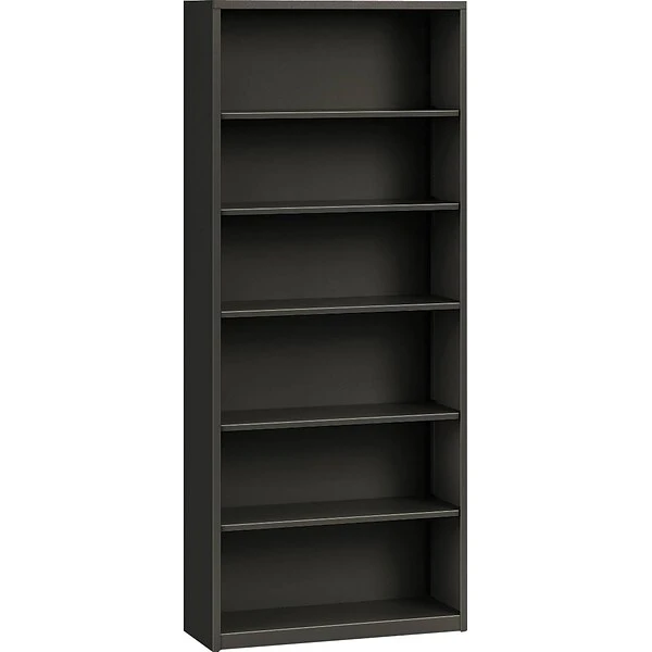 HON® Brigadeâ„¢ Metal bookcase in charcoal color measuring 80 1/8″ x 34 1/2″ x 12 5/8″ has 11 3/4″ deep shelves that adjust in 1/2″ increments to hold any size item safely. Bookcase with six shelves has a heavy-duty construction for durability.