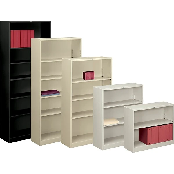 - Steel bookcase with adjustable shelves features commercial-grade construction