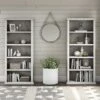 The kathy ireland Home by Bush Furniture Cottage Grove tall narrow five-shelf bookcase with door offers a practical storage and display solution with appealing modern farmhouse style. Use the top of the bookshelf to brighten up any room with pictures and decorations or organize a collection of paperback and hardcover books. Two of the upper shelves can be raised or lowered to accommodate items of various sizes, and the bottom storage cabinet also contains an adjustable shelf so larger materials can be kept in order but out of sight. Each shelf supports up to 50 lbs. Hardware is included to anchor the bookcase to a wall for maximum stability in your home office, living room, entryway, or any other residential space.