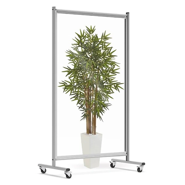 Here’s a room partition that promotes social distancing in an office, classroom, healthcare facility, retail environment, and more. With a tall, acrylic sneeze guard panel that extends nearly to the floor, it creates a barrier between workspaces or sections off small areas of a room.