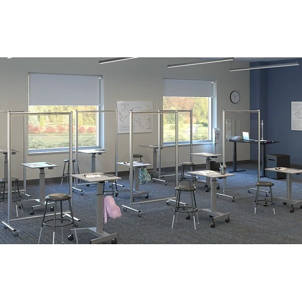 Luxor’s MD4072A provides a tall, acrylic sneeze guard panel that extends nearly to the floor, it creates a barrier between workspaces or sections off small areas of a room.