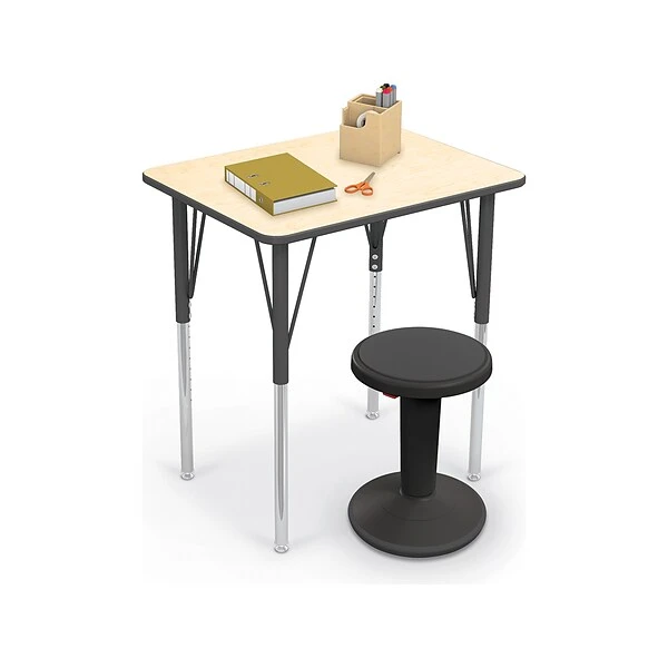 The MooreCo Essentials Economy rectangle desk brings simplicity and functionality in a package made to fit any classroom or school study setting. The desk offers quick and easy assembly, possibilities for numerous group configurations, and height adjustability from 21″ to 30″. Provides flexibility and a comfortable workspace for students. Top available in fusion maple or gray nebula finish with black edge banding, and adjustable powder-coated black steel legs. The legs feature swivel glides. Optional youth height leg insert lowers the adjustment by 6″ to accommodate early childhood users.