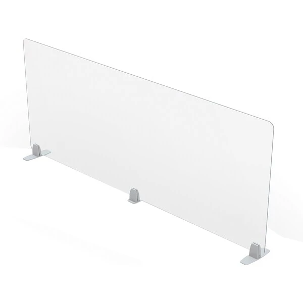 Keep your students, staff, and customers safer and more protected from the spread of germs with the MooreCo acrylic desktop divider. This freestanding divider can be mounted wherever needed on the desktop. Use more than one to protect on all sides. Great for use in classrooms, offices, or any customer-facing applications. Powder-coated aluminum mounts feature a rubber pad to protect surfaces. The divider includes a double tape mounting option. This 24″ x 60″ divider fits virtually any desktop. Mix and match sizes to fit your desks and tables.