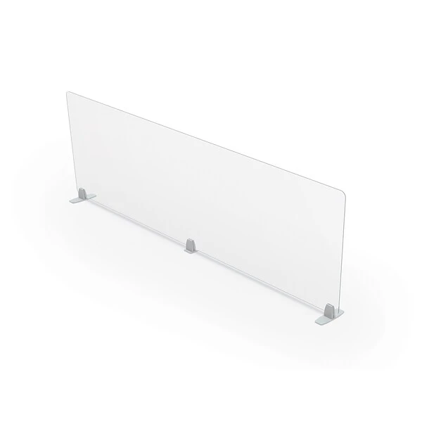 Keep your students, staff, and customers safer and more protected from the spread of germs with the MooreCo acrylic desktop divider. This freestanding divider can be mounted wherever needed on the desktop. Use more than one to protect on all sides. Great for use in classrooms, offices, or any customer-facing applications. Powder-coated aluminum mounts feature a rubber pad to protect surfaces. The divider includes a double tape mounting option. This 24″ x 72″ divider fits virtually any desktop. Mix and match sizes to fit your desks and tables.