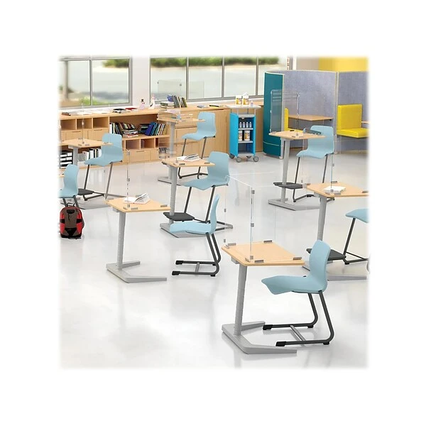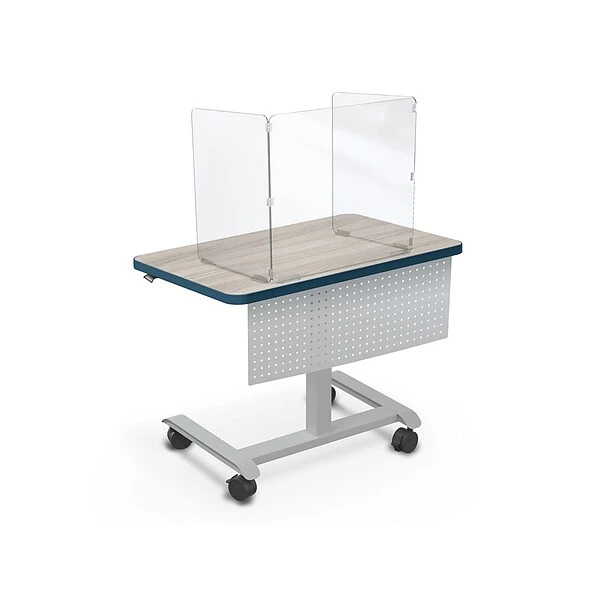 Keep your students, staff, and customers safer and more protected from the spread of germs with the MooreCo trifold desktop screen. The handy all-in-one form factor requires no installation and fits on virtually any desk or tabletop to provide clear division and protection, while still allowing for visibility and social interaction. It is perfect for use in classrooms, offices, or any customer-facing applications. Acrylic panels adjust for open angles and fold flat for storage. Panels are joined with acrylic hinges for an easy to clean and disinfect screen. To clean, simply lift the screen out of the brackets, clean, and place the divider right back where it came from. Keep your panel more secure with double-sided adhesive on the bottom. Eliminate worries about scratching your desktop by mounting the brackets under the panel.