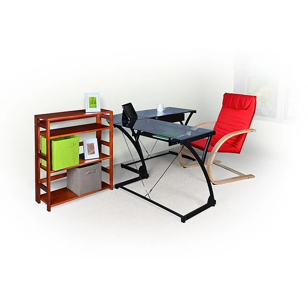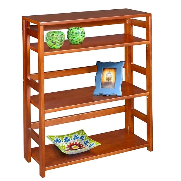 - A folding bookcase with a hand-rubbed veneer cherry finish and made using solid hardwood
