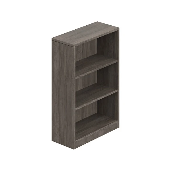 - Standard bookcase is made of laminate in artisan gray finish; comes with matching 3mm impact-resistant edges