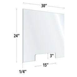 OfficeSource Clear Acrylic Screens are an easy and economical way to maintain physical separation and prevent the spread of germs in your office, restaurant, hospital, school, or other public places without sacrificing productivity. The 1/4″ clear acrylic construction is easy to clean using most non-abrasive cleaners such as disinfecting wipes, disinfectant sprays, mild soaps, and some multi-surface cleaners (check labels). Brackets mount between two back to back 1″ work surfaces when screens are installed as a desk divider between the two work surfaces. Free-Standing Panel Feet can be used anywhere without attaching to a work surface, for example, on the front of a reception counter edge. These brackets include an anti-slip, textured bottom to prevent movement. The transaction spacing is 1/2″H from the top of the table, leaving enough room to slide paper underneath. Dimensions: 30″W x 24″H. Transaction Cutout Dimensions: 15″W x 3″H. Feet Dimensions: 1 7/8 W x 2-1/2″ Tall x 8″ L. Kit includes 2 acrylic screens and 4 free-standing panel feet, 2 feet for each screen. Limited Lifetime Warranty.