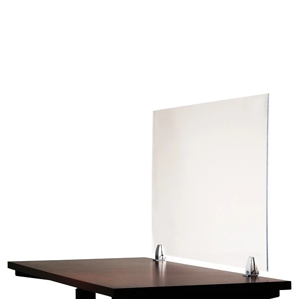 OfficeSource Clear Acrylic Screens are an easy and economical way to maintain physical separation and prevent the spread of germs in your office, restaurant, hospital, school, or other public places without sacrificing productivity. The 1/4″ clear acrylic construction is easy to clean using most non-abrasive cleaners such as disinfecting wipes, disinfectant sprays, mild soaps, and some multi-surface cleaners (check labels). The surface clamp screen brackets are easy to install on 1 to 1-1/2″ thick tops. The transaction spacing is 1/2″H from the top of the table, leaving enough room to slide paper underneath. Dimensions: 72″W x 24″H. Bracket Dimensions: 4 1/8″H x 1 3/4″D. Kit includes 2 acrylic screens and 4 surface clamp brackets, 2 brackets for each screen. Limited Lifetime Warranty.
