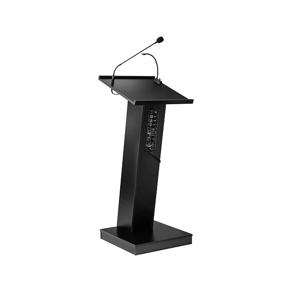 - Functional and modern floor lectern delivers both podium and sound in one durable unit