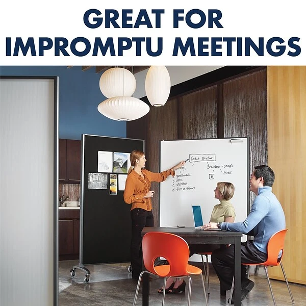 - Double-sided room divider is also a mobile presentation easel and collaboration system