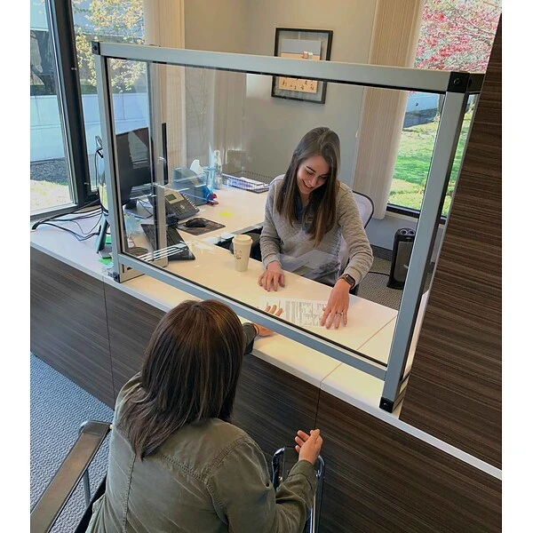 - 0.25″ Thick Clear Acrylic Partition with Stable Aluminum Frame for Safety