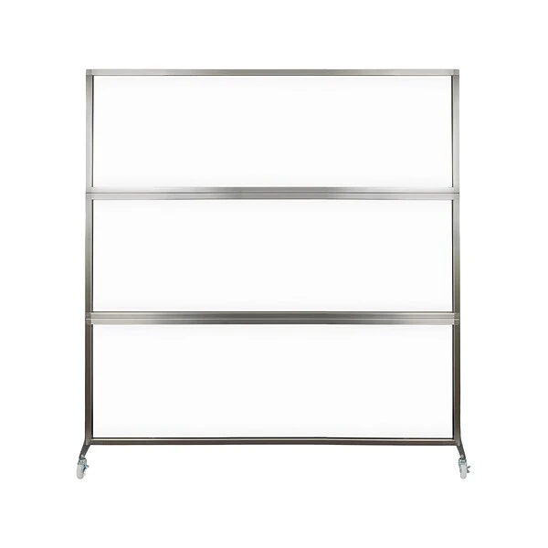 Mitigate airborne germs with the durable, easy-to-clean polycarbonate panels. The Versare MediPanel portable divider helps you ensure social distancing, comfort, and privacy when you need to interact in public spaces. A patented telescoping slide mechanism keeps the panels in a straight line.