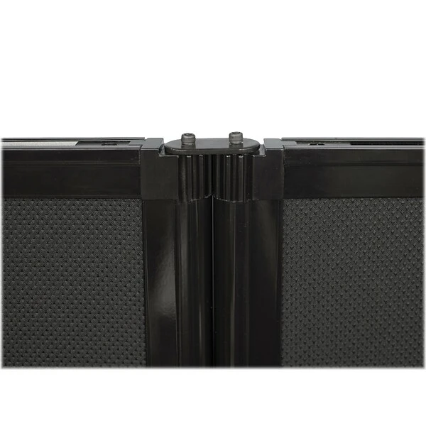 - Temporarily divide large areas with this folding portable partition featuring tackable black fabric panels